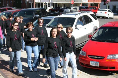Every October, Mahaska Health hosts a Breast Cancer Awareness Walk around Oskaloosa City Square to bring awareness and show support to our community. The walk is held during lunch hours and everyone is welcome! Displayed are hundreds of pink flags, recognizing the number of women who are diagnosed with breast cancer in Iowa each year. The annual walk is hosted to raise funds for Breast Cancer Awareness and to honor those who have battled or are battling this diagnosis. In October, our Care Teams recognize Breast Cancer Awareness Month and help remind everyone to get their screenings. Fighting cancer is 365-days a year. Our team is here for you each and every day – no matter what the day brings and no matter what you are going through.